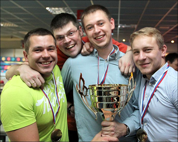 Команда-лидер сезона, "Отдел внутреннего аудита" в этот раз была недостаточно хороша, впервые завоевав лишь бронзовые медали. Конечно, и не такое бывает среди носителей "желтых маек", видели мы падения куда круче. Радует, что команда по-прежнему готова бороться за новые кубки. А победителями этапа (уже второй раз в этом сезоне) стала команда "Управление планирования и отчетности". На самом деле ребятам сильно повезло - заняв с первой половины первую строчку турнирной таблицы, лишь благодаря хорошему отрыву от остальных претендентов они смогли остаться первыми - "Отдел развития эквайринга" под занавес разогналась не на шутку и чуть было вообще не выиграла этап. В третьей четверти Алексей Химин установил рекорд веера в одной игре, набрав 229 очков (!!!), а Алексей Макаров, набрав в четвертой четверти 182 очка, стал в итоге улчшим игроком этапа, показав средний 167 очков. Под занавес турнира борьба за кубок была мощной! Поздравляем победителей, команду "Управление планирования и отчетности". Хоть вторая половина былап менее удачной, чем первая, но, видя что их догоняют, игроки не пали духом и продолжали бороться до конца. Молодцы! Еще одним открытием тунрнира стала команда "Управление филиальной сети". Придя в чемпионат лишь в прошлом месяце и заняв там одно из последних мест (как и подавляющее большинство новчиков, кстати), команда собралась с силами, мобилизовала резервы, и уже во второй раз заняла четвертое место! Отличный тренд, поздравляем! Пятое место так же заняли новички - в чемпинате дебютировало "Киевское ОМБ". Редкий случай, когда дебютанты сразу прорываются в первую пятерку призеров. Программа-medium была выполнена :) Надеемся, в октябре команда замахнется на maximum, то есть на кубок. Завершила список первой половины участниц команда "Зеленоградское ОМБ". Хочется отметить игру Дарьи Гирлиной - она завоевала приз за лучший результат в одной игре среди женщин (168 очков) и совсем немного не дотянула до звания лучшего игрока этапа (средний 159,50). Команды, занявшие места во второй половине списка, можно отметить лишь одним словом - старались. Ни одна из них не набрала общий средний ниже 100 очков. Да и разница в набранных очках меджу местами вышла небольшой. Так что падать духом и расстраиваться смысла нет - просто не могут все выигрывать :) Но если стараться каждый этап - ротация в таблице будет всякий раз. И последние запросто моугт стать первыми. Спасибо всем за отличную игру. Как и в прошлые месяцы, общий дух чемпионата был на высоте - задор, поддержка, командный дух. Следующий этап запланирован на 14 октября, желаем все собраться с силами и как следуюет приготовиться :) 7 этап, сентябрь 2014
