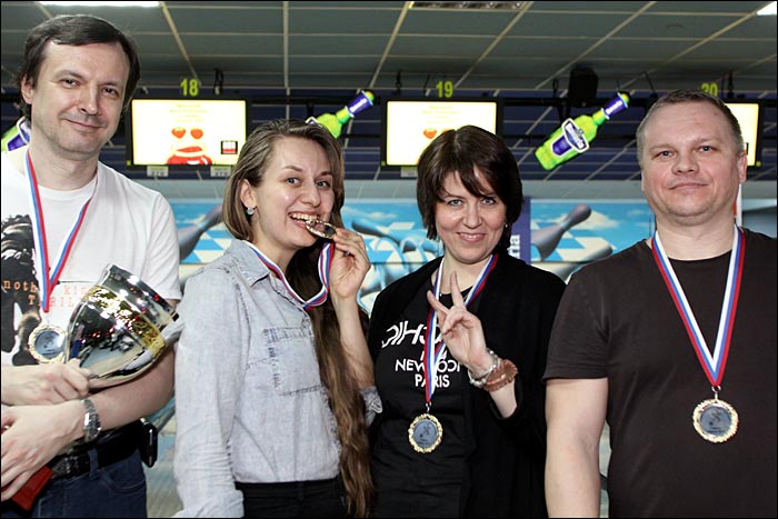 Прошел командный турнир по боулингу среди сотрудников анимационной студии "Петрушка". 11 команд упорно боролись за большой кубок и медали. По итогам 4 игр победу одержали игроки команды "Молот рендера" (дорожка 20). Второе место заняли их соседи, игроки с дорожки 21. Третье место заняла дорожка 15. В индивидуальном зачете лучшим игроком турнира стал Андрей Гончаров: средний по 4 играм составил 176,25. И он же стал автором лучшего результата среди мужчин - 208 очков. Приз за лушчий результат в одной игре среди женщин завоевала Евгения Долинина (15 дорожка, 148 очков). Мы благодарим всех сотрудниклв студии за участие и надеемся в скором времени снова увидеть всех в боулинге! Результаты: